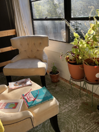 Located in a small loft area upstairs, our petite 63-square-foot studio rental is a remarkably versatile, very private space that defies its compact dimensions. Despite the rather lower ceiling, this intimate retreat offers a wealth of creative possibilities, serving as a tranquil oasis for work and artistic pursuits. Enveloped by the rustic allure of cedar-paneled walls, it radiates a cozy ambiance, inviting inspiration at every turn.